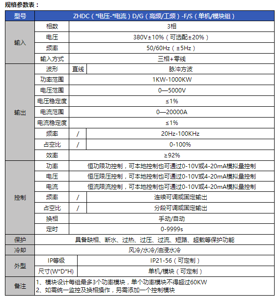 ZHDC系列是一款適用于污水處理行業的工業級高功率直流電源,zui高輸出電流可至20000A,可根據客戶實際使用情況定制:IP防護等級(IP21-56)、單機/模塊化、本地/遠控和輸出換相等設計。該系列采用IGBT功率模塊和可控硅整流技術兩種機型,可適用于各種工業生產廢水、污水的處理工作,可支持PLC等自動化半自動化處理過程。是處理污水、造就良好水資源生產環境的電源。