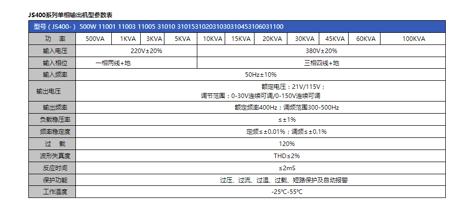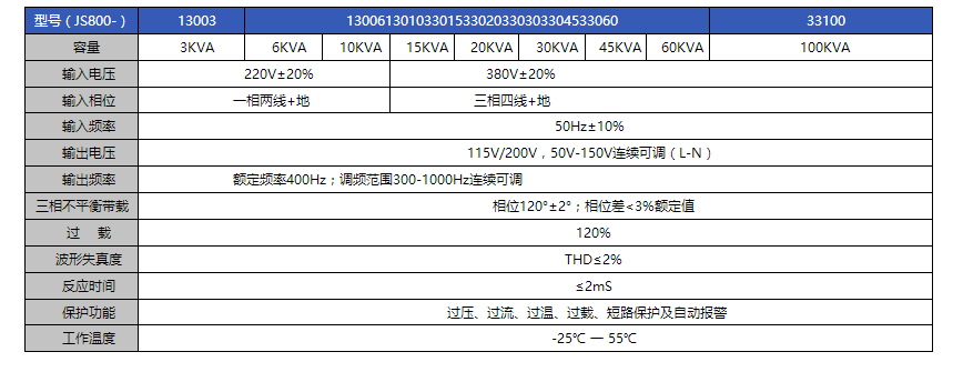 JS400系列400Hz中頻電源專門為航空、電氣設備研發(fā)制造,可廣泛應用于飛機啟動、維修供電、組裝基地、及機載設備、雷達等電子設備實驗室等場所,為其提供穩(wěn)定的400Hz交流電。