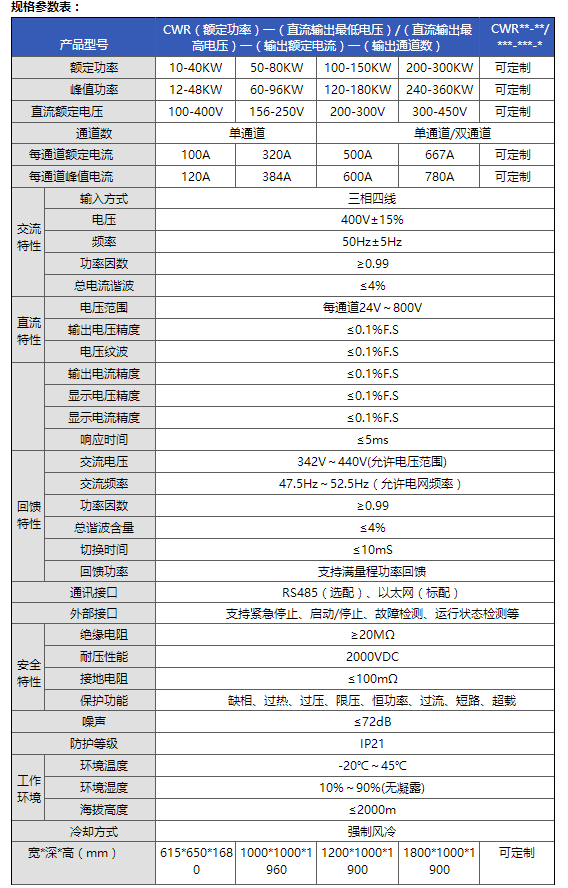描述: CWR-D系列電池模擬器可模擬動力電池組的類型,串聯或并聯節數,SOC指標及電池組放電過程中電池內阻的變化過程等輸出特性。系統采用可饋網式設計,模擬動力電池組輸入對新能源汽車電機控制器的輸入功率,輸出電流,過載能力,耐壓及電機的效率,堵轉電流測試,高轉速,超速,電流反饋等性能進行模擬實驗。能使超速實驗中的反電動勢的能量回饋電網,避免控制器損壞。
